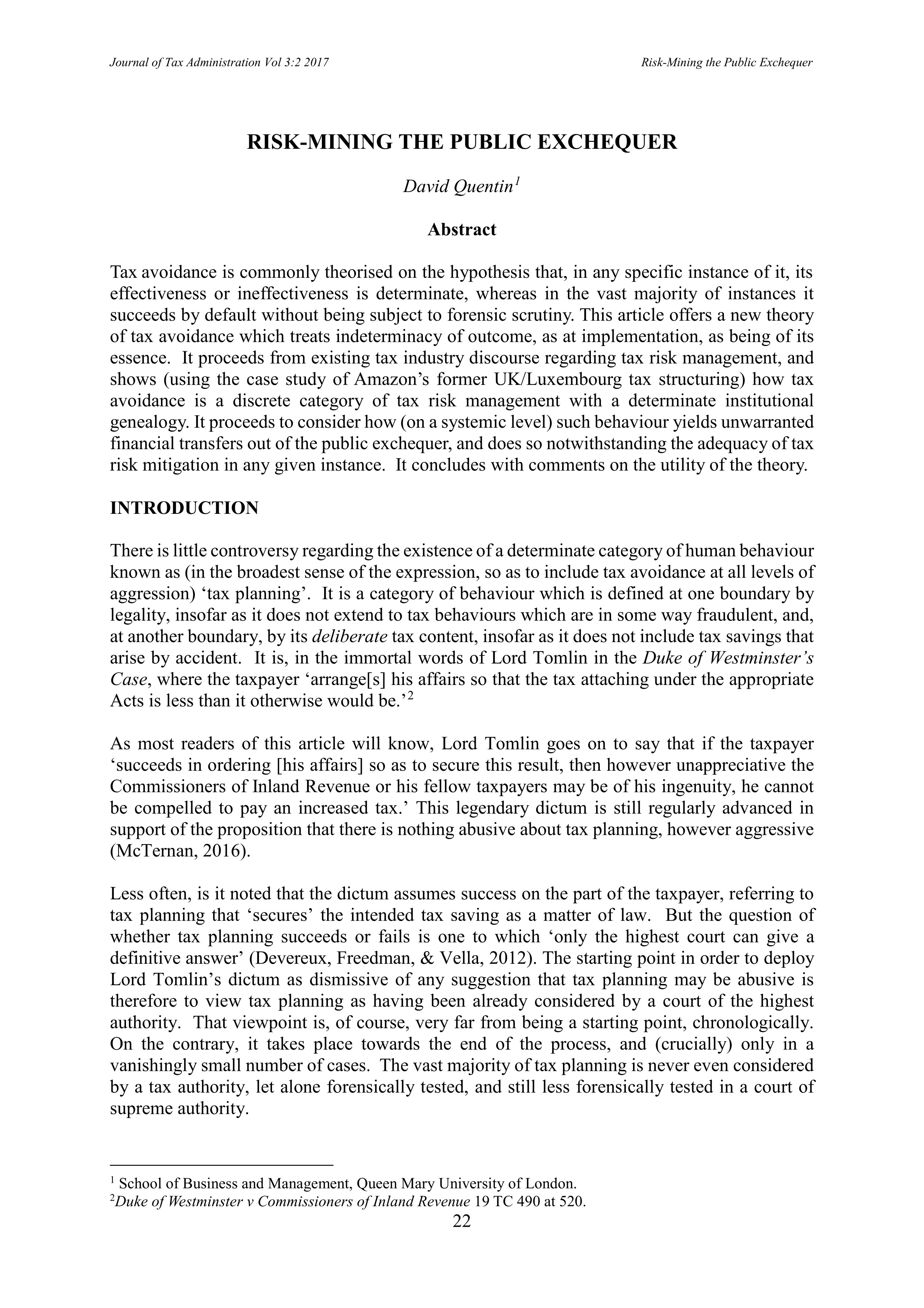 This general issue of JOTA contains a geographically dispersed and methodologically diverse set of papers, including three papers that emanated from a workshop held in London in May 2016 on the theme of tax avoidance, and three reviews: