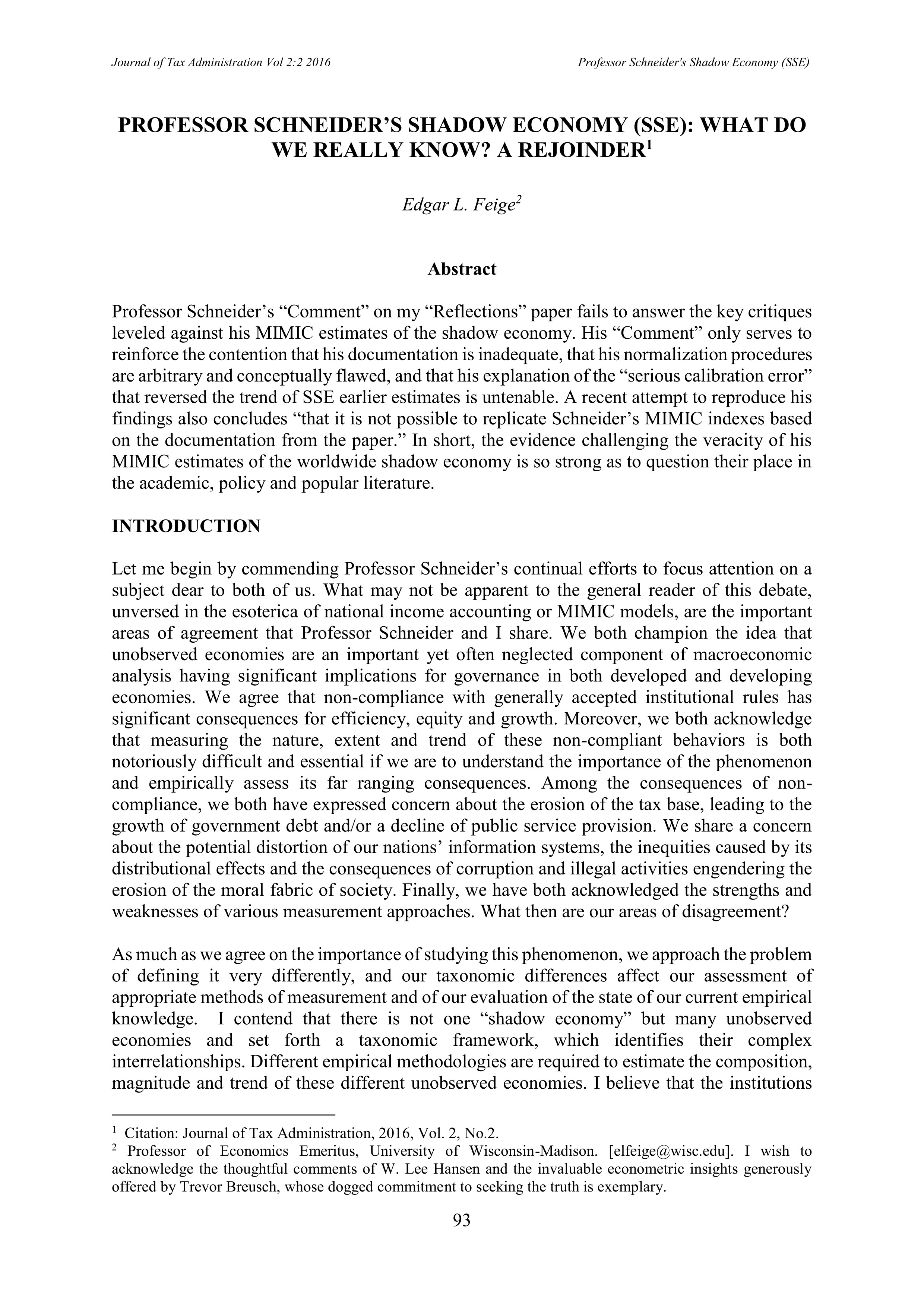 Edgar L. Feige - Professor Schneider’s Shadow Economy (SSE): What Do We Really Know? A Rejoinder